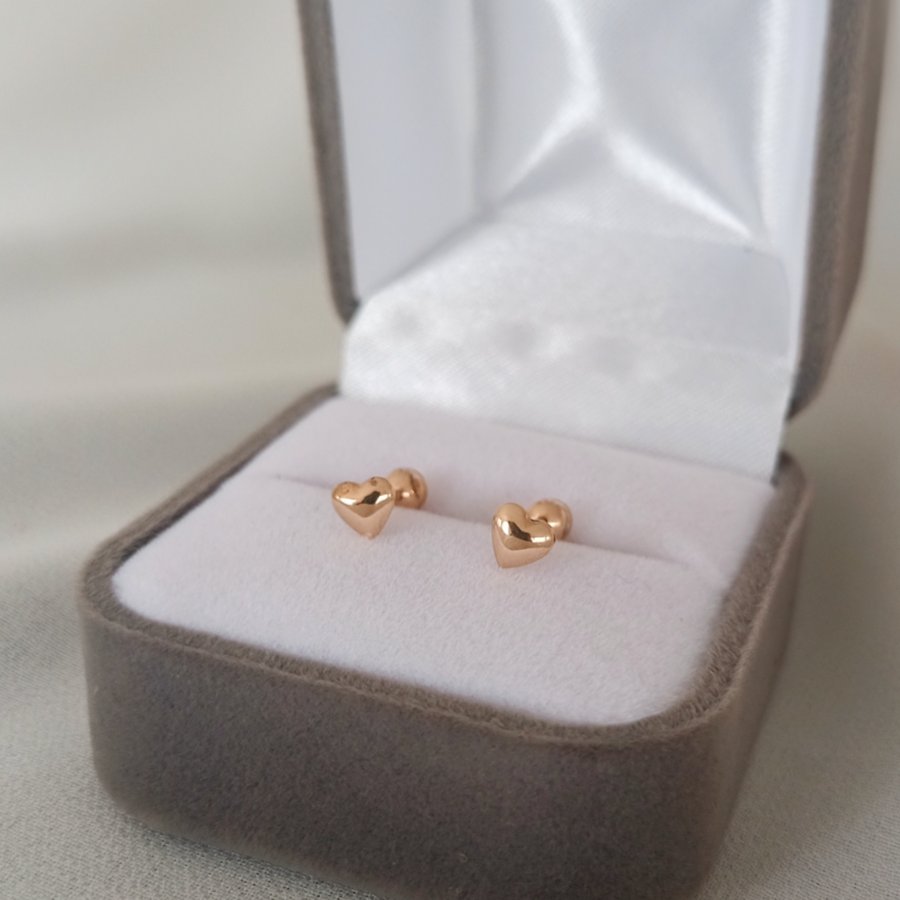 Delicados abridores reversibles en ORO 18K en forma de corazoncito bombita.