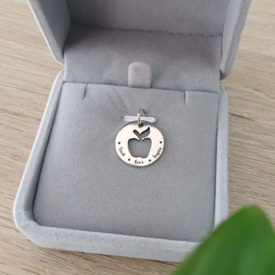 Cadena y plaquita grabada en plata 950 y detalle de manzana calada