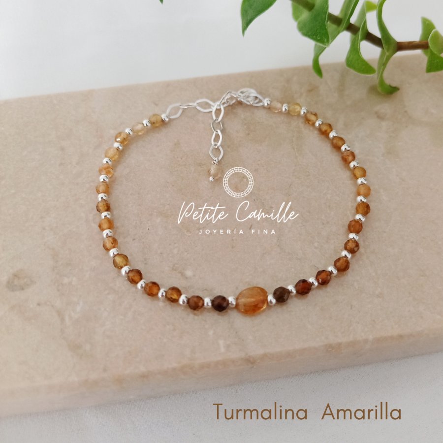 Pulsera con piedras naturales: Turmalinas amarillas, billas y terminales en plata 925.